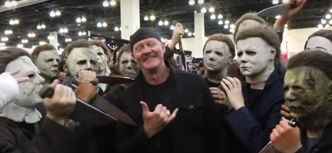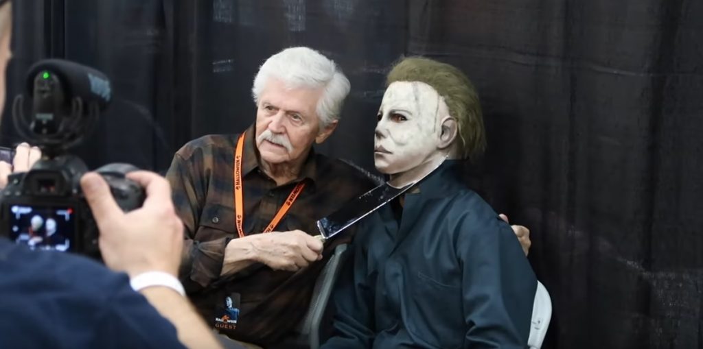 Dick Warlock (Michael Myers dans Halloween II) prend la pose avec un fan
