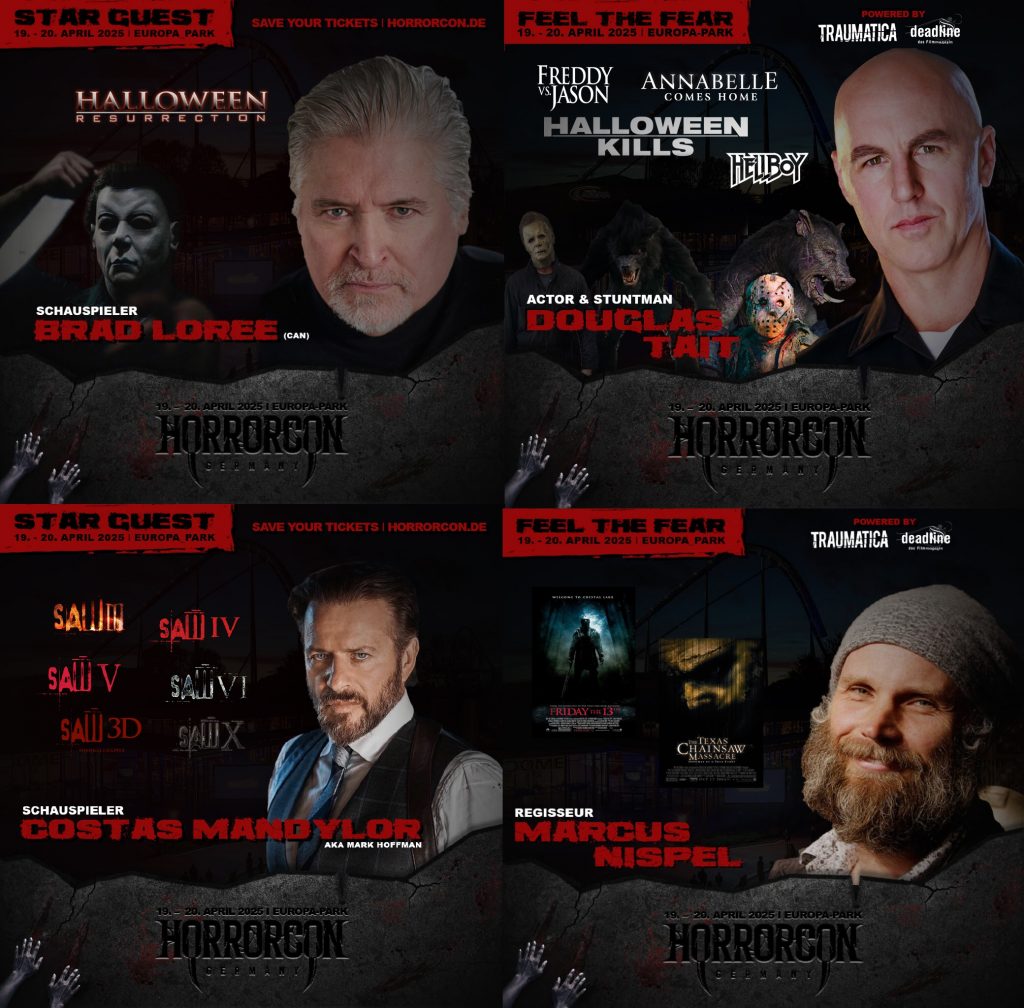 Les premières stars à rejoindre la programmation ne sont pas moins que Brad Loree, interprète de Michael Myers dans Halloween Resurrection, Douglas Tait, interprète de Myers dans Halloween Kills, mais aussi Costas Mandylor (saga Saw), James Duval (Donnie Darko, May) et le réalisateur Marcus Nispel (remakes de Massacre à la tronçonneuse en 2003 et de Vendredi 13 en 2009). Les préventes permettent de réserver pour 20 à 37€ les entrées ou pass weekend, des autographes ou photos avec ce casting, en attendant de nouvelles têtes d’affiches pour agrémenter encore ce bel événement interdit aux moins de 18 ans !