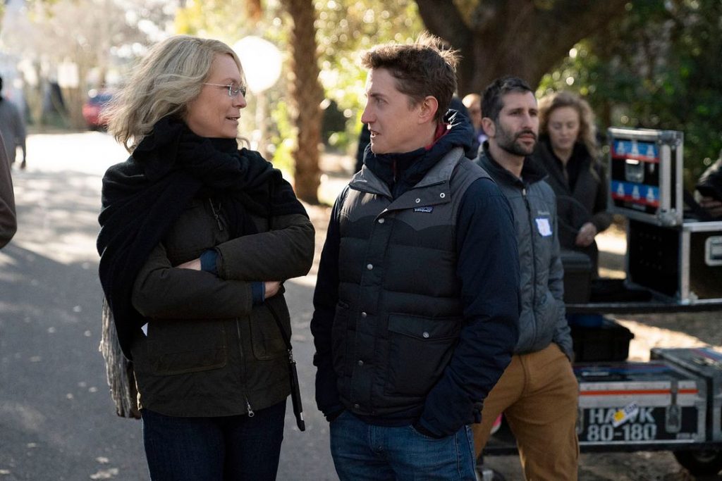 David Gordon Green et Jamie Lee Curtis sur le tournage d’Halloween (2018)