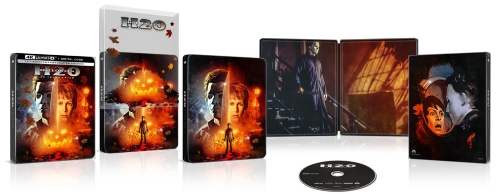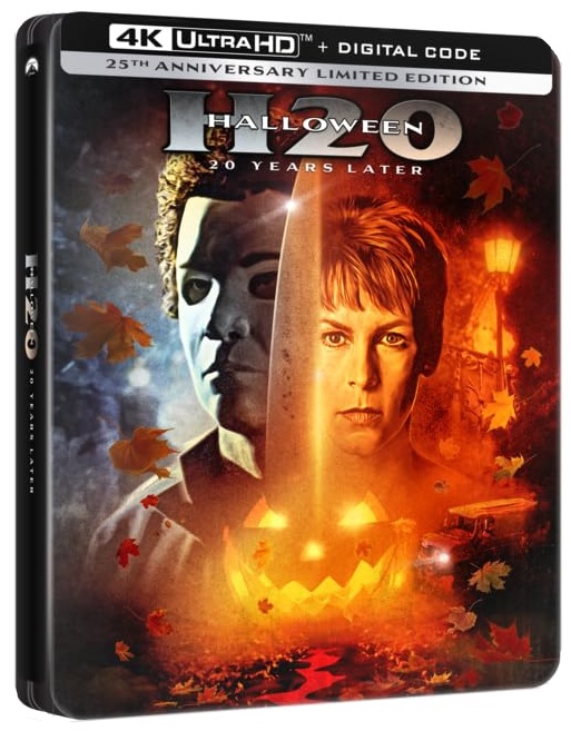 La Paramount édite une édition marquant le 25e anniversaire d’Halloween 20 ans après, dans un magnifique Steelbook 4K qui sortira le 26 septembre 2023 aux USA. Le film était sorti dans un coffret réunissant les opus 6, 7 et 8 (les trois premiers films de la saga sous la houlette de la firme Dimension) via Scream Factory l’an passé. C’est donc la première fois qu’Halloween H20 est édité isolément en format 4K, et pour l’occasion, un fourreau spécial accompagne cette édition collector limitée.