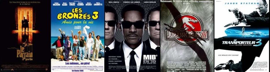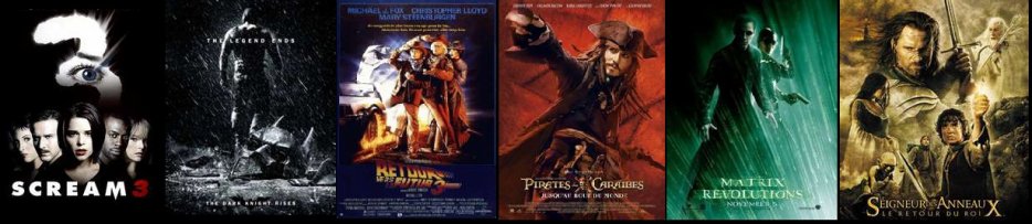 D’un film à succès naît donc une suite nouant généralement avec la notion de surenchère, puis d’un troisième opus justifié par la notion de trilogie. Parfois elle s’impose d’elle-même comme un cheminement logique (Le seigneur des anneaux : le retour du roi, Spider-man : no way home, Retour vers le futur III, The Dark Knight Rises). D’autres fois elle s’envisage dès la fin du premier opus, avec la réalisation successive des opus 2 et 3 sous le même acabit (Pirates des Caraïbes, Matrix). Mais parfois, elle ne fait que suivre un succès qui se réitère sur une troisième bobine, avec les mêmes (faux) arguments que la première séquelle.