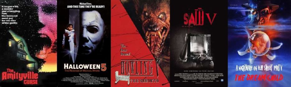 Les sagas qui se clôturent par un 5e chapitre ne sont pas nombreuses. L’opus 5 est pourtant rarement le meilleur. Il n’en est pas moins un chapitre transitoire. Étonnamment, hormis pour Douce nuit sanglante nuit précitée ou pour Le retour des morts-vivants 5, les sagas ayant terminé leur course avec un cinquième chapitre ne sont pas sans avoir grandement plu au public : Le fils de Chucky (2004) poursuit les aventures de la poupée tueuse avec un talent rare et engendre le double de ce qu’il a coûté à la production. Destination finale 5, malgré des revenus modestes, se pare d’une réputation bien meilleure que son opus précédent. Enfin, La bataille de la planète des singes clôt la partie filmique de la saga originelle, poursuivant les déboires inter-temporels de l’homme et du singe dans une série télé toujours aussi couronnée de succès, avant de revenir sur le devant de la scène avec un remake de Tim Burton en 2001, et une nouvelle trilogie (Le commencement, L’affrontement et Suprématie, de 2011 à 2017) et de nouveaux opus sous la houlette de la firme Disney.