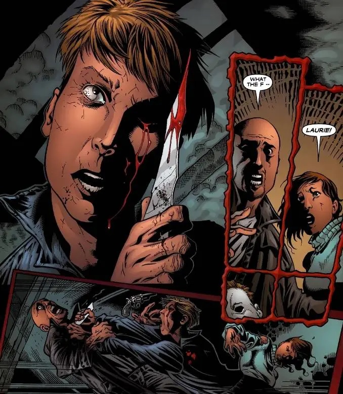 Cette grande révélation a finalement été adaptée en bande dessinée dans le triptyque Halloween I, II et III édité chez Chaos Comics en 2000 et 2001. « Phil Nutman, scénariste de BD, était venu me voir parce qu’il savait que j’avais écrit un des opus ciné. Lui ne se disait pas aussi « calé » que moi sur le sujet. Aussi ai-je pensé que puisque cette idée de menait nulle part au cinéma, pourquoi ne pas la retranscrire sur ce support pour lui donner vie ? Sa bande dessinée a dont été basée sur cette idée que j’avais écrite » . Une façon de ne pas voir mourir cette idée et ce coup de théâtre, qui n’aurait jamais trouvé d’arrangement au sein des studios propriétaires des droits ciné, toujours selon Farrands : « Rien de tout cela n’aurait été pris au sérieux. Je savais comment était la politique à ce moment-là. C’était très moche les animosités entre le camp Dimension/Miramax, toujours en désaccord avec le camp Nightfall/Akkad. Il n’y avait rien d’amical dans leurs rapports après Halloween 6. Je pense que malgré Halloween 20 ans après, il y avait toujours une tension, un malaise, voire un malheur. Ce n’était pas un bon mariage, et je pense que les Akkad auraient adoré s’en séparer à de nombreuses reprises au fil des ans, mais comme Dimension avait une option continue, s’ils avaient donné le feu vert à un autre film dans ce trop court laps de temps, Dimension aurait continuer à contrôler ces suites. Je ne suis même pas sûr d’avoir eu un retour quand à ce script que j’ai rédigé à l’époque. Il a du se retrouver sur ou sous une pile d’autres traitements, mais j’ai apprécié qu’ils m’ouvrent à nouveau une porte. Nous sommes restés en très bons termes et ont toujours fait preuve de soutien et d’une grande gentillesse à mon égard. Après l’accueil mitigé d’Halloween 6, personne d’autre qu’eux n’auraient eu de considération pour mon travail chez Dimension. Mais au final, l’univers d’Halloween est en constante expansion et prend des tournures différentes à chaque film. C’est un peu comme autant de choix potentiels qui s’offrent à vous, pour que vous choisissiez l’aventure qui vous plaît. Il sera intéressant de voir où ira cette franchise, après la fin de cette trilogie de David Gordon Green, dans un an ou deux, car je sais pertinemment que ça n’est pas terminé. Halloween, c’est comme Noël ou Thanksgiving. Halloween vivra éternellement » .