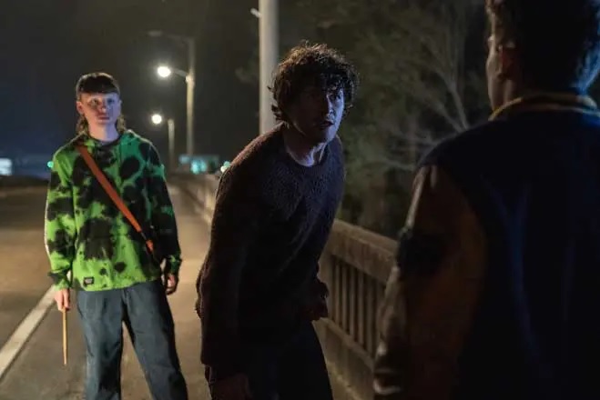 Certes, ceux qui pensaient assister à deux heures de confrontation entre une Laurie Strode déterminée et un Michael Myers régénéré, comme la continuité du dernier quart d’Halloween 2018, d’un prolongement du délectable (mais trop court) spectacle que fut le final d’Halloween 20 ans après, voire d’une revanche sur l’ouverture d’un Halloween Resurrection de sinistre mémoire, ceux-là pourront pleurer à chaudes larmes pour d’autres raisons que pour la part émotive des dernières minutes de bobines dépeintes ici. Car si nous avons bel et bien une bataille finale entre les deux entités légendaires de la firme, celle-ci n’arrive que comme une ultime récompense à un film qui traite du mal sous une toute autre dimension, et pendant les 90% du métrage. C’est là que le film choque autant qu’il déçoit, car il dénote considérablement avec le reste de la saga. Dans Halloween Ends, il ne sera pas question de Laurie et de Myers, malgré tout ce que les deux précédents films nous auront laissé croire. On laissera même avec regrets des personnages importants sur le carreau (Lindsey en grunge totalement inutile à l’intrigue, Hawkins en déambulateur à fabuler sur des cerisiers en fleurs, le shérif Barker qui n’aura jusqu’au bout servi à rien…). Ici, il s’agira de parler du Mal, celui que le Dr Loomis décrivait en des mots si forts à travers l’image de Michael Myers, sauf que ce Mal peut prendre de nouvelles formes, tout aussi destructrices, et tout aussi inattendues. Halloween Kills amorçait l’idée de la diffusion du mal par le mal. Ici, elle atteint avec lui son paroxysme, décrivant la chute inexorable et les travers d’une ville meurtrie jusqu’à la moelle qui va engendrer malgré elle une nouvelle fatalité meurtrière.