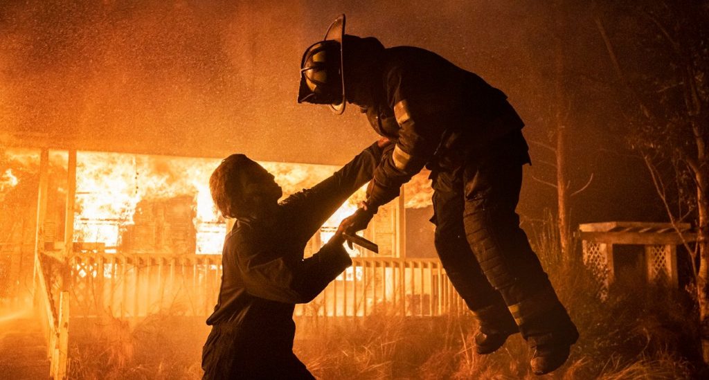 Et comment ne pas mettre le doigt sur l’horreur graphique d’une violence inouïe à faire pâlir les boucheries pourtant déjà bien gratinées des deux opus de Rob Zombie ? Les afficionados du film original apprécient les références mais comment ne pas trembler devant les effusions de gore quand on les compare à tout le talent subjectif dont Carpenter avait fait usage à l’époque ? Michael Myers est ici une machine à tuer aux antipodes du croquemitaine fantôme de 1978. Une barbarie d’abord impressionnante (la sortie des flammes est un moment d’anthologie qui marquera les mémoires) puis déconcertantes (on reproche une certaine facilité dans le procédé des meurtres, dont la gratuité dans la maison d’origine avec le couple Big John et Little John et une mécanique qui manque cruellement de cohérence notamment dans l’attaque de la voiture avec Lindsey et Marion) avant de devenir gênantes (l’explosion sanglante finale, en mode totalement « what the fuck ? »). Fait marqué qui plus est par les trois premiers quarts du film en rouage de pur mouvement contre le tueur (« Le mal meurt ce soir ! », pour peu que vous vous en lassiez) qui finit par un virage à 180° balbutiant un timide « ah ben non, en fait le mal ne meurt jamais » menant à cette nouvelle théorie selon laquelle Myers tirerait sa force de ses meurtres plus que de la peur qu’il génère. Car de la peur, avouons-le, plus personne n’en ressent vraiment face au bourreau masqué. Ni dans le public habitué aux jump scare parant un manque flagrant de suspense, ni dans le film. Puisqu’après une séquence aussi lisse que malaisante dans le bar où Tommy exprime ses ressentiments d’enfant apparemment choqué à vie, des personnages censés être rongés par 40 ans de hantise s’emparent finalement très vite de tout ce qui leur passe sous la main (mention spéciale à cette habitante de Haddonfield armée… d’un fer à repasser pour affronter Myers) comme si la thérapie par l’électrochoc était encore la véritable formule libératrice de tous les traumatismes liées à l’enfance. La violence est alors non seulement visuelle à travers près de la trentaine (oui oui !) de meurtres de Myers, mais aussi sournoisement psychologique à travers des personnages bouffés par la haine et les remords et pour les lesquels on ne sait plus si on ressent de la pitié, du dégoût ou une totale désaffection.