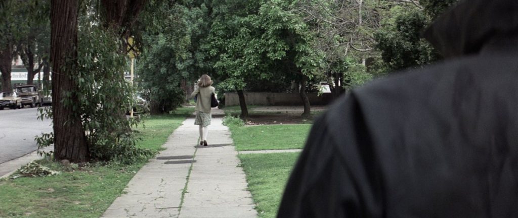 Bien entendu, la réalisation de Halloween relève à juste titre du révolutionnaire, le format en cinémascope étant de toute beauté et le recours à la caméra subjective (inédit à l’époque) pour plonger le spectateur dans le regard du tueur est tout bonnement épique. L’héroïne du film, la jeune et ingénue Laurie Strode, et ses deux amies plus déjantées Annie et Lynda, sont la représentation même de la jeunesse américaine de l’époque. Tandis que Michael Myers fait figure de croquemitaine d’Halloween venu terroriser de jeunes inconscients. En 1978, les ingrédients sont réunis pour faire de La Nuit des Masques un film à succès, mais encore une fois, son immense potentiel ne peut se résoudre aux éléments qu’il offre au public. La tension, que le Dr Loomis fait grandir à chaque seconde (presque mécaniquement et exagérément, c’est fort dommage), est palpable durant l’affrontement final entre Laurie et Michael Myers, durant lequel ce dernier fait soudainement preuve d’un manque total de talent dans le meurtre (le premier coup de couteau qui effleure à peine le bras de l’héroïne, la traque lente dans les rues de Haddonfield, le second coup de couteau planté tout droit dans le coussin du canapé), ces énormités comparées à la violence barbare avec laquelle il décimait l’entourage de la jeune fille font de Myers un pantin au pouvoir bancal pour une figure censée être le Mal à l’état pur. D’ailleurs, lorsque Laurie parviendra in extremis à lui ôter son masque, le tueur lâchera prise comme si sa force ne résidait qu’à travers l’image qu’il renvoie.