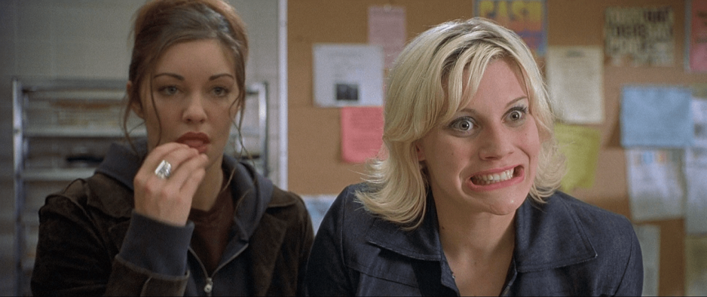 Halloween Resurrection semble tout d’abord éveiller de bons souvenirs à l’actrice. Elle se souvient de ses liens d’amitié avec Tyra Banks, Busta Rhymes et l’actrice principale Bianca Kajlich, et même de Jamie Lee Curtis. Le sacre de la scream queen, elle le revendique presque : « Je hurle comme personne. Et encore aujourd’hui. D’ailleurs, pour Resurrection, bon nombre de mes cris ont été enregistrés et ont servi en doublage pour celui de l’héroïne. Et ça, j’en suis très fière ». Vient alors le moment du lancement. D’emblée, le visage crispé de l’actrice (l’ambiance est bon enfant et prête beaucoup à l’amusement) laisse à penser qu’elle a pleinement conscience de ne pas assister à un chef d’œuvre. Mettant le film sur pause au plan de la poupée dans la chambre d’hôpital de Laurie, elle précise ne pas aimer les films d’horreur, non pas par peur enfantine (l’actrice a une connaissance pointue sur l’impact du genre, pour y avoir contribué plusieurs fois durant sa carrière) mais ne comprend pas pourquoi les poupées éveillent la peur au cinéma, dit ne pas connaître Annabelle, et estime que Chucky n’a rien d’effrayant. Le ton est donné. Et le plaisir de l’exercice n’en est qu’à son tout début. Il suffit de voir la séquence du meurtre des gardiens et l’irrésistible réaction de l’actrice pendant le visionnage. D’abord heurtée par les images, elle met pause pour indiquer sur un ton très concis : « Okay, ce gars meurt quand même super vite », estimant d’après elle que l’égorgement aurait du être accompagné de jets de sang pour être plus crédible. Elément qu’elle accompagne de nombreux détails techniques diablement intéressants (idem pour le meurtre au trépied), et de mises en scène en mode « hyper-realistic ». Une séquence à hurler de rire. Elle n’omettra aucun détail incongru, de la porte défoncée à coup de tête par Myers, du piège et de la réaction idiote de frapper dans le vide avec son couteau, ou du fait qu’il se tienne à la gouttière en soutenant par deux doigts le poids de son corps et de celui de Laurie. Lorsque le film se concentrera enfin sur la partie dans laquelle son personnage apparaît, elle ne sera pas plus tendre avec elle-même, relevant ses élocutions hasardeuses, ses faux rires forcés, ses tics empruntés à Alicia Silverstone (Clueless a été son modèle, comme bon nombre de filles de son âge), sa ressemblance physique avec Brittany Murphy, et bien-sûr le côté « bitch » de son personnage et ses répliques estampillées.