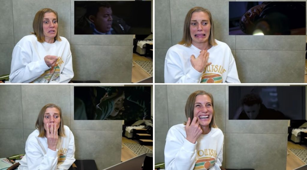 Il y a quelques semaines, toutefois, une actrice du film a fait la surprise de partager en ligne aux fans de la saga et internautes de sa page YouTube, ses réactions à la découverte d’Halloween Resurrection. Il s’agit de Katee Sackhoff, interprète de Jen, la blonde excentrique et délurée dans le film. Le métrage de Rick Rosenthal marque le début de sa carrière, on l’a notamment vu depuis dans la série Battlestar Galactica dont elle a été l’une des révélations, mais aussi les films de genre La voix des morts 2 : la lumière, Riddick, The Mirror (Oculus) et Baba Yaga. D’emblée, comme elle le révèle dans les premières secondes de la vidéo, et c’est ce qui rend l’exercice aussi ludique que palpitant : elle n’a jamais vu le film. Les révélations au sujet de son interprétation n’en seront que plus savoureuses, et, car c’est tout l’intérêt de l’exercice, totalement objectives. Ses notions quant à la saga sont toutefois assez sommaires, l’actrice précisant ne pas avoir vu grand chose de la franchise, situant son film comme étant le neuvième (il s’agit en réalité du huitième). Pour elle, Michael Myers est « le sale type qui tue Jamie Lee Curtis à chaque fois », mais résume de façon assez précise son film par l’immersion de la génération MTV dans la demeure originelle du tueur, équipée de caméras, afin d’en déceler les sombres secrets.