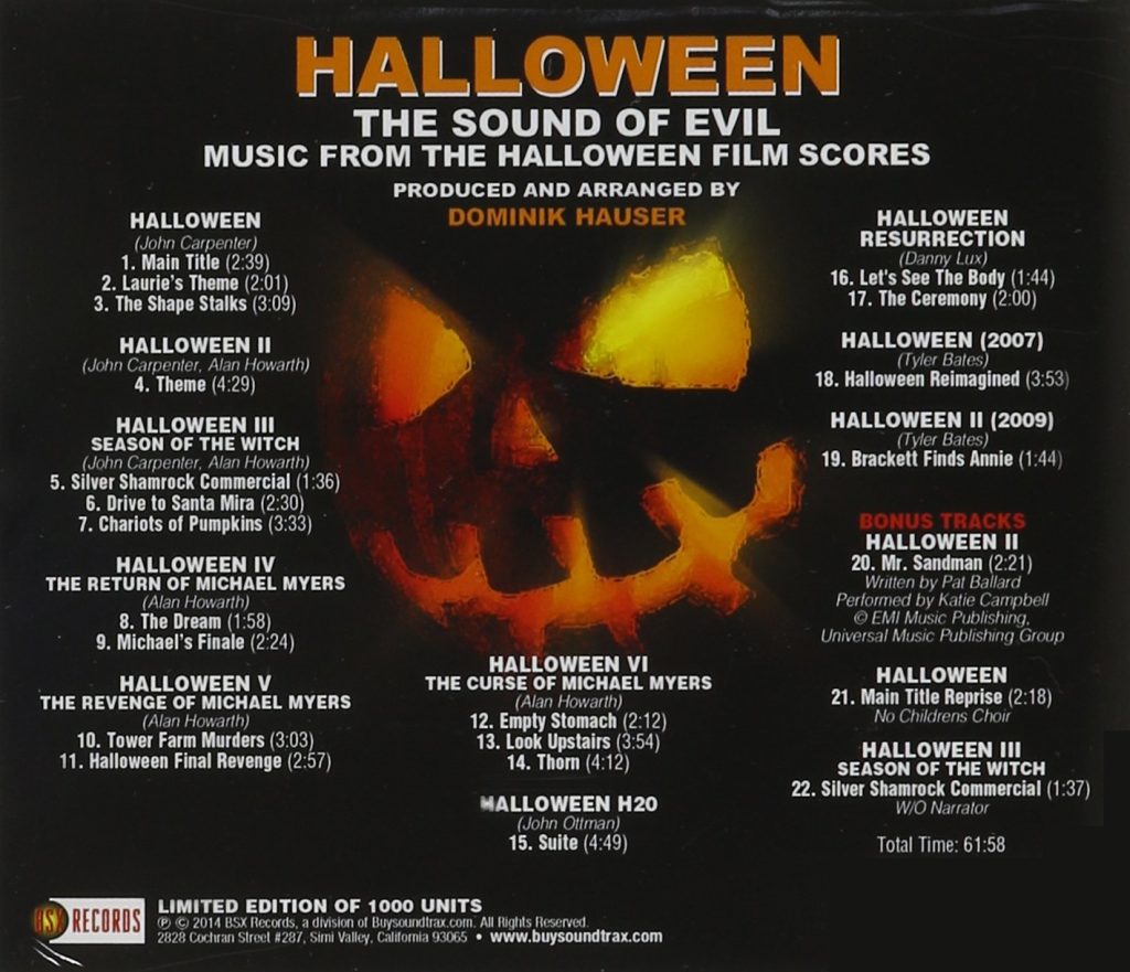 J’aime toujours autant le premier film et ses thèmes emblématiques (le Main title, Laurie’s theme, The shape stalks…). Il y a eu très peu de développement des thèmes d’Halloween 2 à 6. Les compositions ont quasiment à l’identique repris les thèmes issus du premier film.
