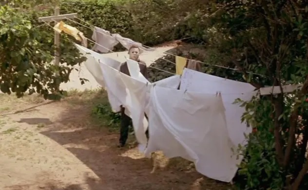 → 15h00 : Juste après la mauvais blague d’Annie au téléphone, Laurie voit Myers au pied de sa fenêtre.