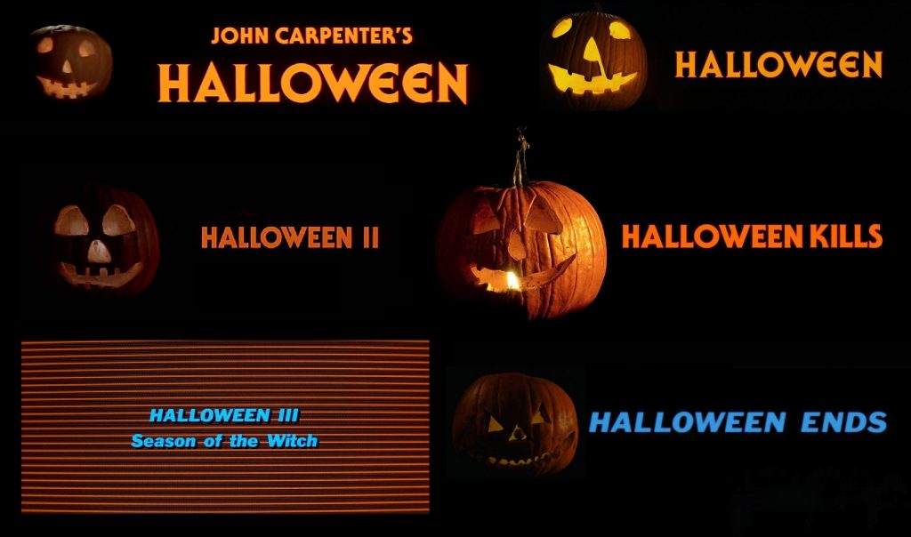 Halloween 2018 reprend le design de la citrouille originale, et les caractères vintage du générique de John Carpenter en 1978. S’éloignant considérablement de la trame d’Halloween II, le générique d’Halloween Kills (2021) reprend les éléments d’ouverture du film de 1981. Tout comme Halloween Ends (2022), bien qu’à des années lumière du développement du film de Tommy Lee Wallace, rejoue lui aussi le style italique et coloré de l’Halloween III original (1982). Quarante ans séparent simultanément ces six ouvertures, mais les liens sont forts. Des pépites offertes aux fans , jouant sur la nostalgie, mais surtout la preuve d’une attention toute particulière de la part des équipes des studios Blumhouse.