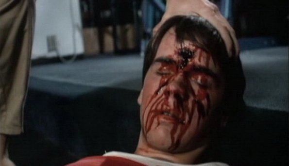 Ne perdons donc pas une minute de ce subtil mélange de tous les clichés les plus représentatifs et lançons-nous dans une langoureuse douche du côté du vestiaire des filles pour que se perpétue entre deux bulles de savon le premier meurtre à l’épingle, tourné avec une véritable volonté de faire peur (ou rire… c’est selon). Le sang coule à flot. Pas de doute, ça n’est pas une overdose de stéroïdes. Mais qui se cache donc derrière la cagoule noire du tueur ? Et pourquoi cet habile tueur à l’épingle entache-t-il de rouge écarlate les tapis de gym de ce si luxurieux endroit de débauche et de testostérone ? Pour répondre à cela, deux caïds vont jouer leurs gros bras : le lieutenant Morgan, flic à la tronche jusqu’à par-terre et chargé de l’affaire, et Chuck Dawson, le bodybuildeur qui n’a pas froid aux yeux et castagne tout ce qui bouge. Dommage toutefois, la police est gauche et le gaillard blond jusqu’à la moelle des os. Il sera irrésistible pour le spectateur de voir avec quelle bêtise le lieutenant s’enfonce dans les fausses pistes, et comment Chuck Norris Dawson se lance dans des corps à corps brûlants avec la racaille de Los Angeles (mention spéciale au combat au râteau au bord de la piscine). Est-ce que cela sert réellement à l’histoire ? Que nenni. Mais y a-t-il là de bons gros moments de poilade en perspective ? Assurément ! Ne boudons pas non plus notre plaisir à voir les deux forces masculines du film s’affronter dans un échange verbal extrêmement mal joué mais bouillant de testostérone pour savoir qui a la plus grosse.