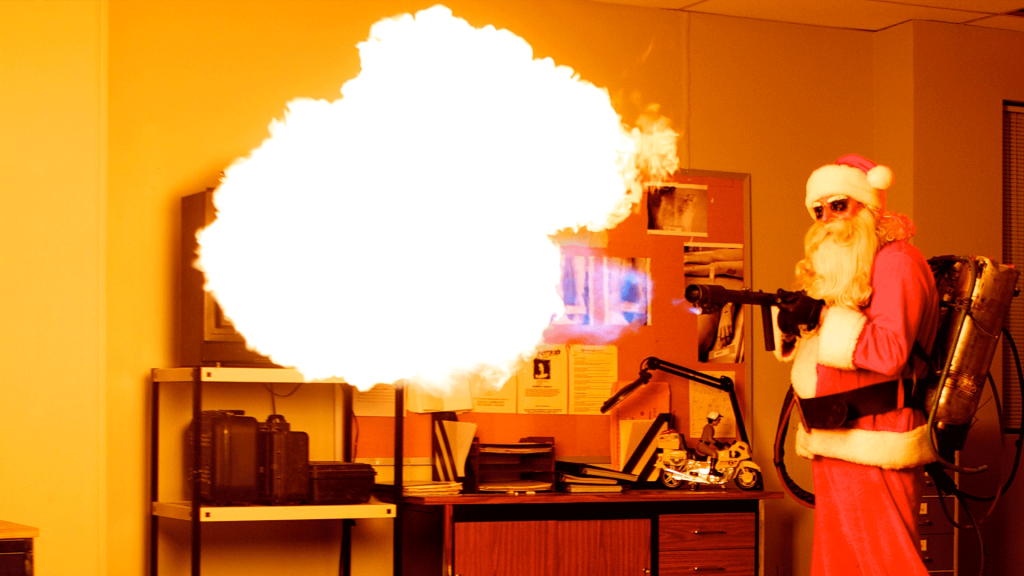 Alors qu’est-ce que le film expose, au final ? Eh bien pas grand-chose, puisque tout se résume à quelques mises à mort vitaminées (électrocution, carnage à la faucille, au lance-flamme, à la broyeuse voire au coup de poing américain !) pour rythmer un métrage qui s’enlise vite dans l’amateurisme de son interprétation (mauvais casting, des figurants caricaturaux et malheureux à l’inutile héroïne tête-à-claque en passant par un McDowell dépossédé de toute finesse). On retiendra toutefois la dénonciation par un personnage désabusé de l’absurdité des fêtes de Noël lors d’une tirade acerbe pas piquée des hannetons, mais dont le potentiel disparaitra avec les quelques souvenirs qu’on aurait pu garder du film s’il n’ajoutait à sa médiocrité d’ensemble un final particulièrement décevant. Seul véritable écho à Douce nuit, sanglante nuit, cette explication tardive et quelque peu misérable ne fait que confirmer le statut culte du film original, et l’improbable approximation de ce sinistre remake. C’est dire si on attend la nouvelle version avec autant d’impatience que d’appréhension, l’équipe technique vouant un culte au film originel, son implication et le rôle-titre de Billy accordé à Rohan Campbell (Corey Cunningham dans Halloween Ends) peuvent toutefois rassurer sur ce film qui sort prochainement…
