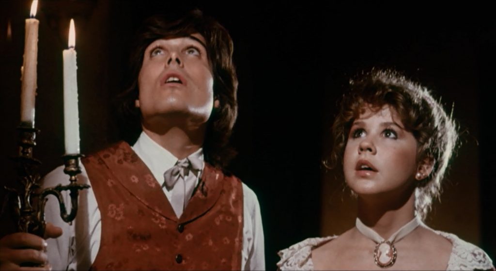 Pas de suspense particulier quant aux identités des tueurs, ce qui, avouons-le, n’importe pas beaucoup puisque les véritables mobiles ou raisons d’être des frères Garth ne sont pas particulièrement creusées. Le véritable intérêt, passée l’exposition de l’environnement baroque de ce manoir ancien, est l’issue de ses personnages, dont on sait vite qui survivra, et qui passera l’arme à gauche. Et c’est au bout de séquences au rythme interminable que les mises à mort interviennent, nombreuses mais relativement insignifiantes. Bien que gratinée sur le papier (étranglement, égorgement, décapitation, coups de tisonnier, empalement…), c’est la mise en scène mollassonne de Tom DeSimone qui ne prend aucun risque, camouflant ses meurtres derrière un noir total ou les évinçant tout simplement en hors champ. Dommage, puisque le cadre hors du commun aurait permis de situer ce Hell Night à la hauteur des fleurons du film gothique de l’époque, conjugué au nouvel essor du slasher, encore précurseur durant ces années post-Halloween.