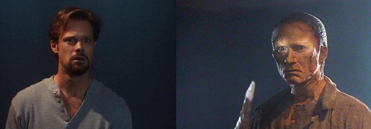 Les années 90, le cul entre deux chaises, le slasher est à la fois mûr et périmé, les effets spéciaux avancés et kitsch, les histoires originales et éculées. Après le Leprechaun ou Morty le pantin de bois de Terreur, et en attendant le Pinocchio revanchard ou Jack Frost le bonhomme de neige, si le mythe du marchand de sable est un incontournable de la légende du croquemitaine et des cauchemars, il y a eu déjà tant de tueurs mêlés au fantastique que celui-ci ne fait pas forcément trembler les murs. Mais l’idée est bonne, assez pour accoucher d’un dérivé vidéo intéressant. Ici, c’est un condamné à mort qui reçoit lors des derniers sacrements la formule lui permettant de se dématérialiser et devenir un tas de sable d’apparence inerte. Fort de ce pouvoir, le Sandman a trois jours pour éliminer le dernier survivant des familles qu’il a décimé de son vivant, et ce afin de devenir invincible. Griffin, la cible de l’homme de sable, doit donc affronter une menace qui semble inarrêtable. Bien sûr, le scénario est plutôt bateau et des histoires pareilles, les films de genre en regorgent de toutes parts. Pour se démarquer de ses congénères, l’homme de sable va devoir tirer son épingle du jeu en frappant là où on ne s’y attend pas. Et dans un produit aussi faible que cette tentative vidéo, le problème est qu’au niveau des surprises, on restera amèrement sur notre faim.