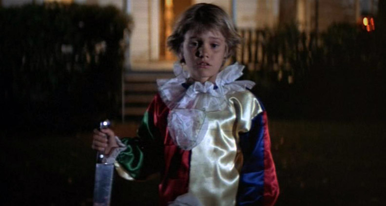 Aux six interprètes de Michael Myers dans La nuit des masques s’ajoute encore le visage du tueur enfant, précoce dans l’art de manier le couteau. Will Sandin, du haut de ses 8 ans, incarne le rôle et inscrit à son tour son minois d’apparence innocente dans la spirale halloweenesque. Dans Halloween II (1981, sous les traits d’Adamn Gunn) puis Halloween Kills (2021, incarné par Christian Michael Pates), cette allure angélique véritablement maléfique reviendra à l’écran pour des séquences de flash-back étroitement liées à cette nuit d’Halloween 1963.