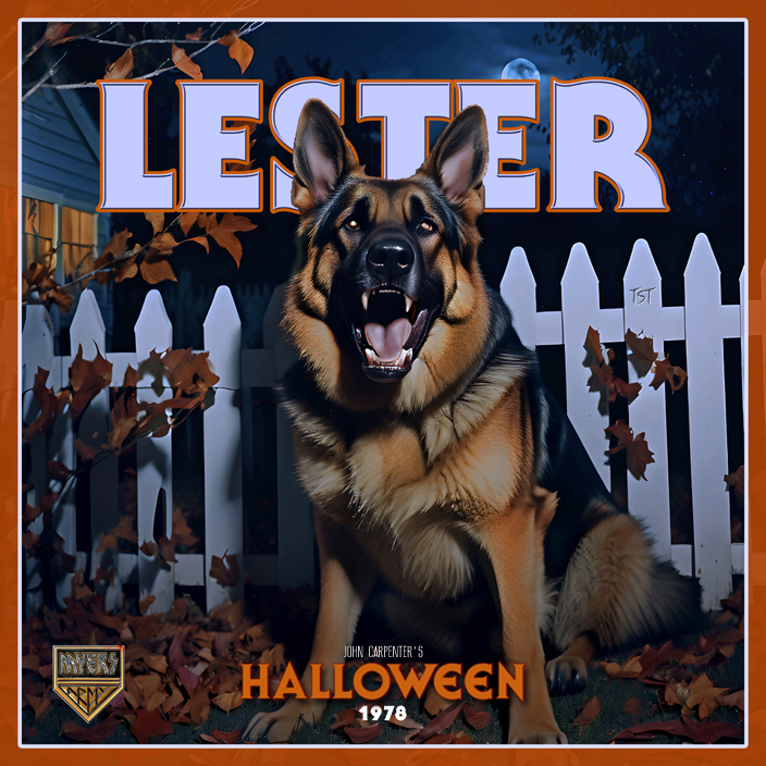 Il n’est pas habituel pour un tueur de slasher movies de s’en prendre aux animaux. À cela, Michael Myers peut être une exception, avec un palmarès de victimes canines important dans la saga. Dès le premier film, Myers tue deux chiens. Le premier (non visible à l’écran, mais exposé plus tard dans l’une des séquences de flash back d’Halloween Kills), découvert par le shérif Brackett et le Dr Loomis dans l’ancienne demeure du tueur. Le second, Lester, le berger allemand d’Annie et du shérif, que Myers étrangle afin qu’il n’attire pas l’attention sur sa présence autour de la maison.