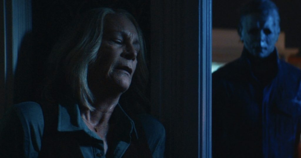 Dans Halloween de David Gordon Green (2018), tout change. Le lien fraternel de Laurie et Michael est abandonné en même temps que tous les opus donnés au film de John Carpenter. En devenant la première (et jusque-là unique) suite de La nuit des masques, Halloween ne cherche plus à faire de Laurie Strode la cible du tueur. Bien que celle-ci se prépare à affronter le monstre depuis 40 ans, Myers n’aura finalement que faire de Laurie. C’est le Dr Sartain qui libérera le prisonnier de ses chaînes. Si le croquemitaine retournera bel et bien à Haddonfield, s’est pour renouer avec sa folle et sanglante activité, mais là encore, c’est Laurie qui viendra se remettre sur sa route en tentant de l’arrêter. Par la suite, c’est à nouveau Sartain qui conduira le tueur jusqu’aux abords de la maison de Laurie. Mais à aucun moment Myers ne cherchera par lui-même à retrouver la trace de l’héroïne. Preuve en est dans Halloween Kills, qui met en scène un Myers survolté éradiquant tous ceux qui se dressent sur sa route, ignorant Laurie piégée sur son lit d’hôpital (contrairement à l’Halloween II original, dans lequel Laurie restait sa cible coûte que coûte, et que le public aime à comparer). Dans Halloween Ends, c’est Corey Cunningham qui sera l’aimant liant Myers à Laurie, pour un affrontement final cherchant désespérément à boucler la boucle sur 44 ans d’alchimie inassouvie. Un peu comme si malgré lui, le croquemitaine finissait toujours par voir Laurie Strode se dresser sur sa route.