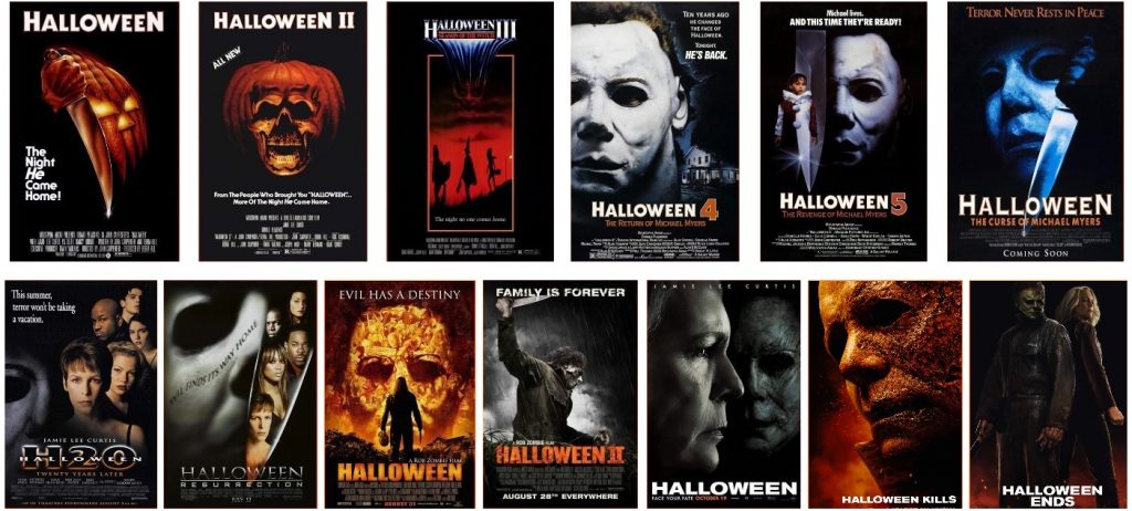La saga Halloween compte à ce jour 13 films réalisés entre 1978 et 2022, de l’opus original culte de John Carpenter, à la dernière trilogie signée David Gordon Green.
