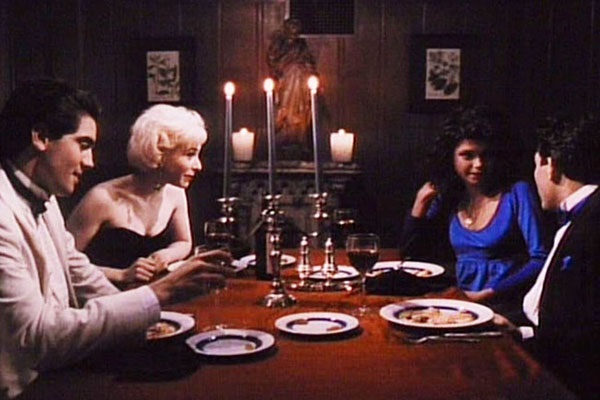 C’est là que ce Bal de l’horreur 4 déçoit et reste encore aujourd’hui la risée de la saga : tout est pris avec un étrange et incroyable sérieux, là où la dérision était de mise. L’opus 3, The last Kiss, avait beau être d’une nullité absolue, il était au moins drôle, ce qui, dans le registre des films d’horreur des années 80, avait au minimum le mérite d’être fun. Ici, malgré un prêtre bodybuildé aux allures de Lorenzo Lamas (les yeux noirs du diable en plus), la trame sert un étalage de messages puritains à outrance, comme si ce mobile archaïque de punir les mécréants était à prendre au premier degré (même quand il rejoue une séquence de Psychose en se travestissant en femme à perruque dans un fauteuil à bascule). Dans un sens, au-delà d’être d’une supercherie rarement atteinte, on est dans le plus pur combat du bien contre le mal, à la différence près que la définition du mal est loin d’être aussi évidente. Bien que perpétrés par un prêtre pour excuser l’idée du tueur impitoyable, les meurtres sont-ils justifiés sous prétexte qu’ils éradiquent des païens ? Les brûleurs de sorcières étaient-ils des hommes de foi plus méritant de la bénédiction divine que les condamnés (qu’ils fussent bel et bien coupables ou non) ? Le débat est sans fin, et trouve ici une représentation vulgarisée au possible qui remet tout de même la question à l’ordre du jour.