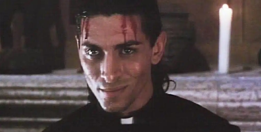 Surfer sur la vague à moindres frais, l’idée sommaire par excellence de toute séquelle qui se respecte davantage qu’elle ne respecte son public. Arrivé à son quatrième opus, suivant un film d’origine très léger bien que culte, ayant malgré lui accouché d’un diptyque filant vers la parodie fantastique de bas étage, la saga du Bal de l’horreur a l’embarras du choix : continuer de creuser le trou de sa fosse mortuaire (après tout, qui en a encore quelque chose à battre de cette franchise ?) ou assurer un nouveau virage à 180° pour surprendre l’hasardeux spectateur qui viendrait s’y frotter. Nous sommes en 1991, le slasher vit sa plus vile agonie (La fin de Freddy sonne déjà le glas du plus populaire des croquemitaines encore à l’écran), et malgré cela, des producteurs sans doute venus d’une dimension parallèle mettent en chantier cette histoire abracabrantesque de curé tueur armé d’un poignard-crucifix. Sur le moment, on ne peut que se dire que ça va être drôle, mais non. Même pas. Alors qu’est-ce que cet OVNI semblant être tombé sur Terre par accident peut bien apporter au genre ?