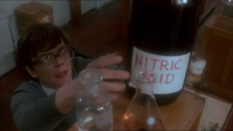 Symbole absolu de son époque, le slasher permet aussi de retrouver les mœurs et coutumes des années 80, avec le principe ô combien américain de faire subir les pires outrages à la tête de turc du lycée. Le jour des fous repose sur le principe de la vengeance la plus légitime du genre, celle de Marty, un jeune étudiant binoclard et naïf, défiguré et traumatisé après qu’une très mauvaise blague de ses camarades ait eu des conséquences dramatiques sur le jeune homme. Affublé d’un masque de bouffon, il va perpétrer une véritable hécatombe auprès de ceux qui se sont joué de sa personne quelques années plus tôt.